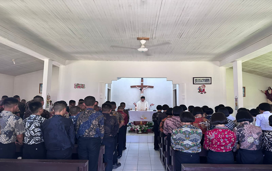Saat prosesi ibadah dimulai, Gereja SMA Taruna Bumi Khatulistiwa dipenuhi dengan nyanyian pujian yang mengalun merdu dari paduan suara siswa. Suasana tenang dan khidmat menyelimuti ruangan saat para guru rohani memberikan bimbingan spiritual kepada para siswa. Mereka berkumpul dengan penuh kegembiraan dan kepedulian, saling menghormati dan mendukung satu sama lain tanpa memandang perbedaan keyakinan.